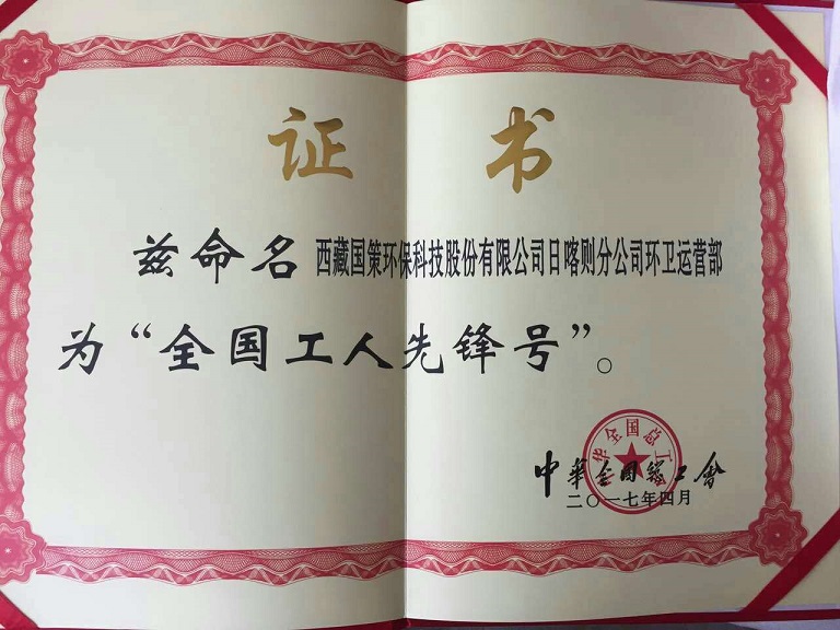 日前,全國總工會召開“五一”新聞發(fā)布會, 通報了一批“2017年全國工人先鋒號”。西藏國策環(huán)??萍脊煞萦邢薰救湛t分公司運(yùn)營部全體成員在日常工作中勞心勞力、風(fēng)雨無阻、踐行無私奉獻(xiàn)的城市“美容師”精神,被授予“2017年全國工人先鋒號”,是我司首獲此殊榮。