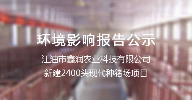 江油市鑫潤農(nóng)業(yè)科技有限公司新建2400頭現(xiàn)代種豬場項(xiàng)目環(huán)境影響評(píng)價(jià)第一次公示
