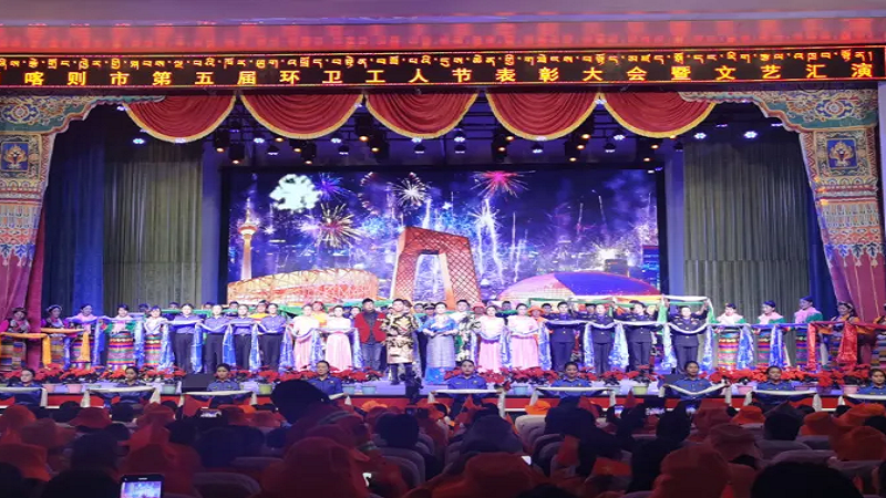 為慶?!碍h(huán)衛(wèi)工人節(jié)”這一個(gè)平凡而偉大的節(jié)日,鼓舞全體環(huán)衛(wèi)工人的士氣,10月26日晚,由日喀則市委、市政府主辦,市城市管理和綜合執(zhí)法局、市文化局承辦的主題為“頌現(xiàn)代化新西藏 展環(huán)衛(wèi)工新風(fēng)采”第五屆環(huán)衛(wèi)工人節(jié)表彰大會(huì)暨文藝匯演在日喀則市職業(yè)技術(shù)學(xué)院舉行,國策環(huán)保日喀則分公司作為參與方積極參與了此次活動(dòng)。