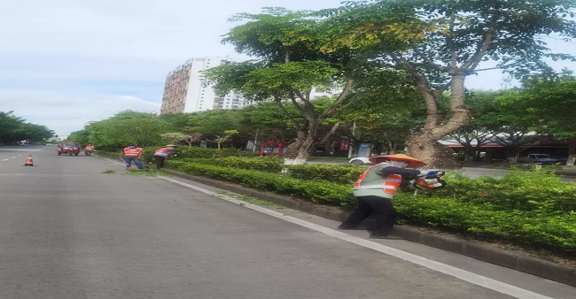 自接手東興市園林管理處以來,國策園林項目一線工作人員加班加點對全市街道綠化植物進行除草、松土、施肥、修剪造型等維護管理工作。